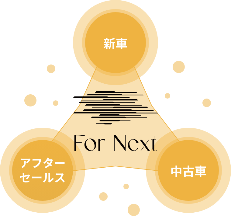 私達For Next Groupでは、お車を単に販売するだけでなく、お客様のライフスタイルとの融合を見つめて、貴方にとって価値の在るお車をご提案させていただいております。